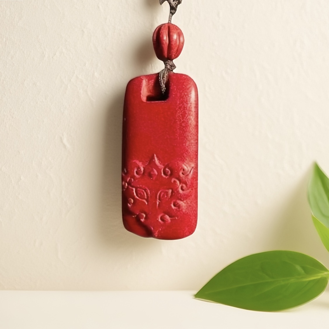 「朱砂瑞獸」墜,紅韻飽滿,浮雕瑞獸紋精緻傳神,繩結古雅,日常佩藏攜福氣,添東方靈韻。
