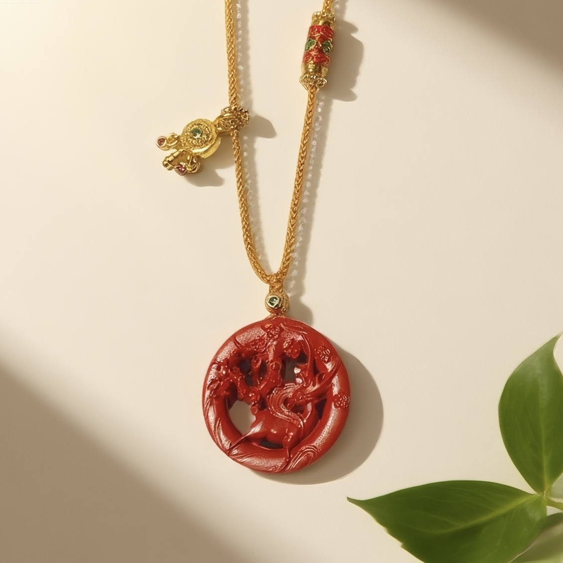 「一鹿花開朱砂牌」紅牌雕鹿與繁花靈動生姿,金鏈點綴精巧雅緻,腕間繫「路路生花」吉意,日常佩藏滿滿溫潤福氣。